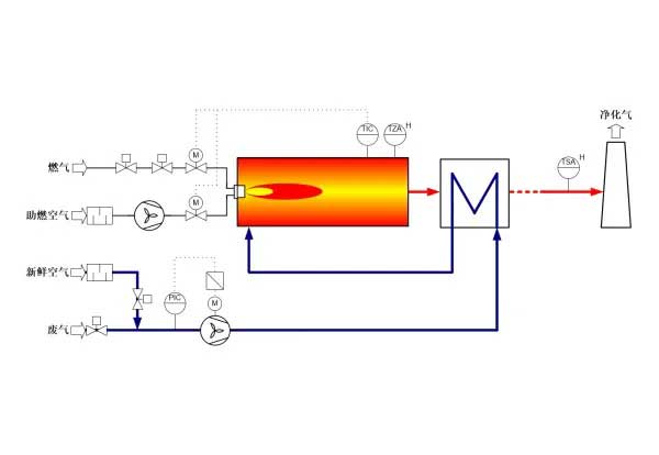 可回收利用廢氣中的熱能,降低能耗。在燃燒或催化燃燒過程中產(chǎn)生的大量熱量可以用于預(yù)熱助燃空氣或其他工藝流程中,實現(xiàn)能源的再利用,符合循環(huán)經(jīng)濟和綠色環(huán)保的理念。