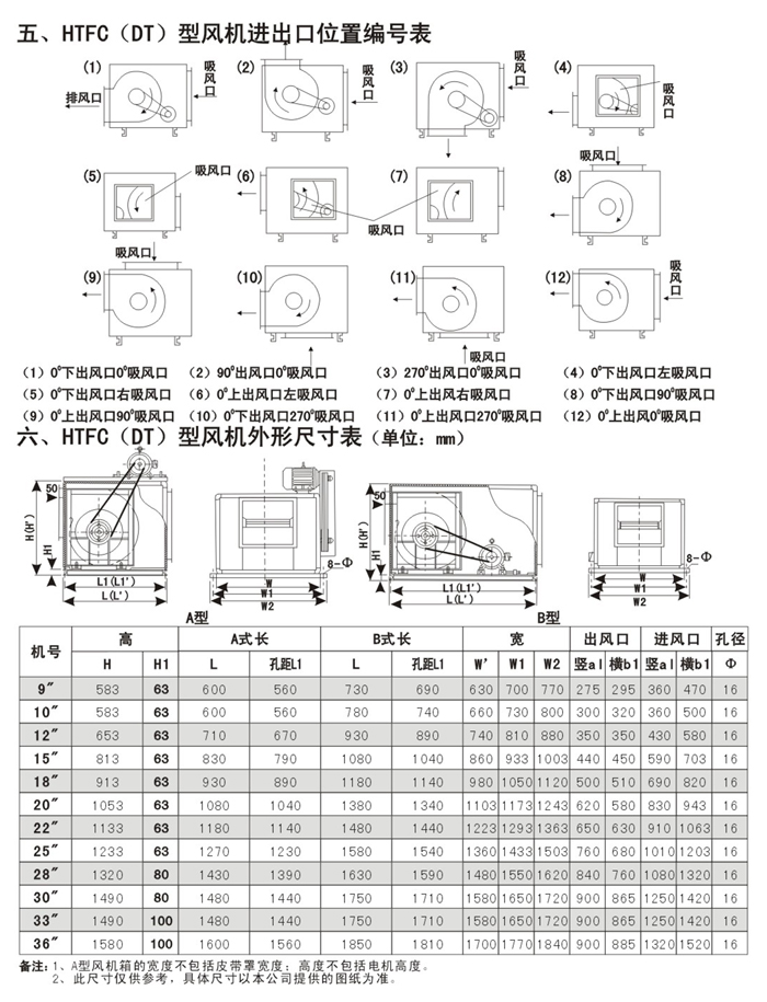 4、 HTFC(DT)系列低噪聲消防通風(fēng)(兩用)柜式離心風(fēng)機分為A型和B型兩種類型,A型電機裝在箱體外,用于消防排煙;B型電機裝在箱體內(nèi),用于通風(fēng)換氣。